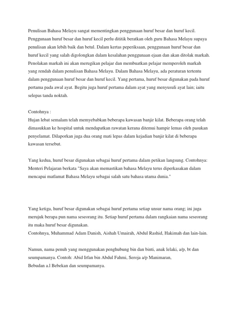 Penulisan Bahasa Melayu Sangat Mementingkan Penggunaan Huruf Besar Dan Huruf Kecil Pdf